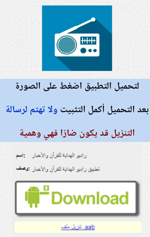 ولتحميل تطبيق راديو الهداية للهاتف قم بالضغط على الصورة التالية:
